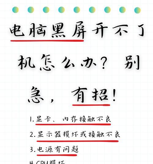 电脑成为现代人生活中必不可少的工具,但有时候也会遇到一些故障,比如开机后黑屏无法启动。本文将为大家介绍一些解决电脑开不了机黑屏问题的方法,希望能帮助读者排除故障,恢复电脑的正常使用。